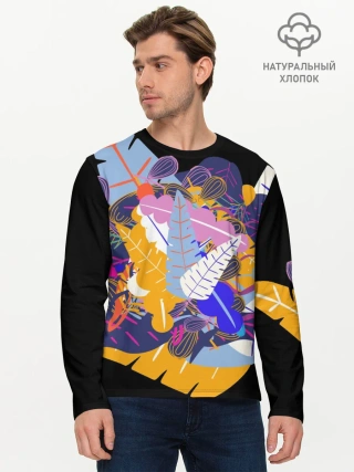 Мужской лонгслив базовый / узор из листьев и цветов