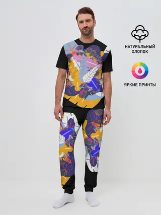 Мужская пижама с брюками / узор из листьев и цветов