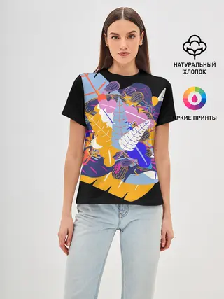Женская базовая футболка / узор из листьев и цветов