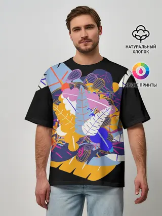 Мужская футболка оверсайз / узор из листьев и цветов