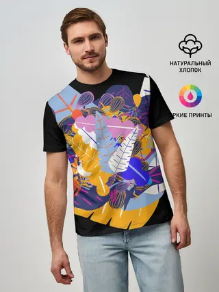 Мужская базовая футболка / узор из листьев и цветов