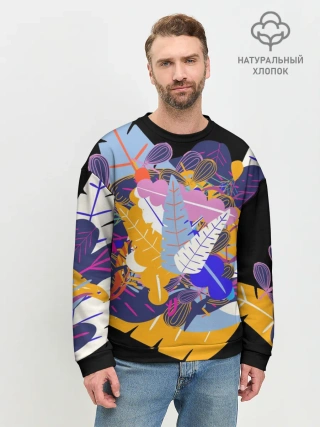 Мужской свитшот базовый / узор из листьев и цветов