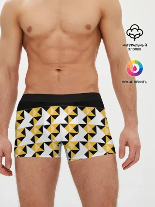 Мужской лонгслив базовый / Черно-желтый геометрический