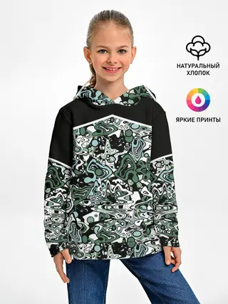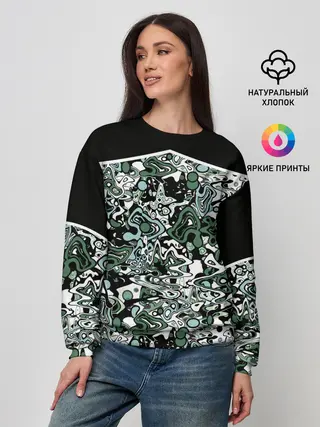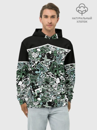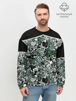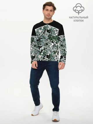 Мужской лонгслив базовый / Черно-зеленые каракули