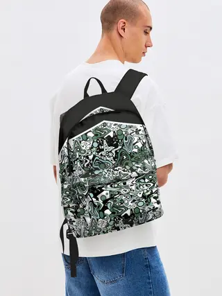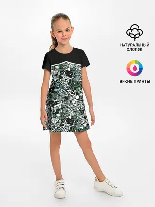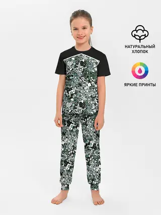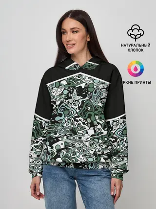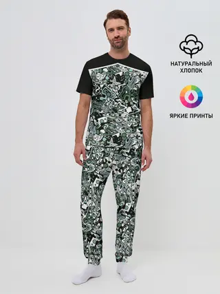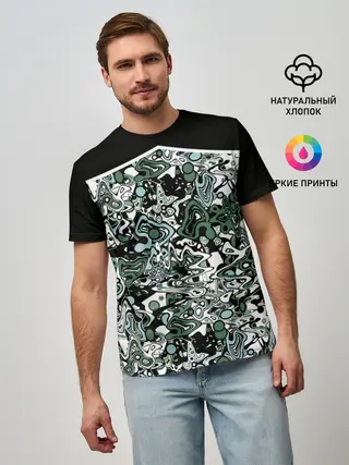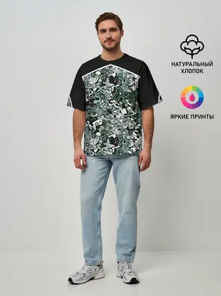 Мужская футболка оверсайз / Черно-зеленые каракули