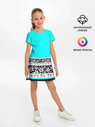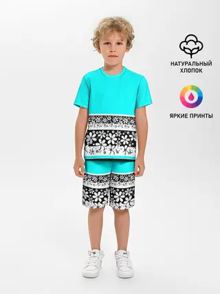 Детская пижама с шортами / Цветочный бирюзовый узор