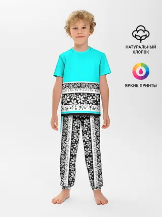 Детская пижама с брюками / Цветочный бирюзовый узор