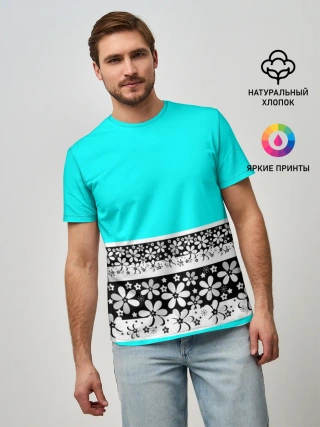 Мужская базовая футболка / Цветочный бирюзовый узор