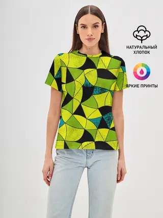 Женская футболка оверсайз / Гранжевый яркий зеленый