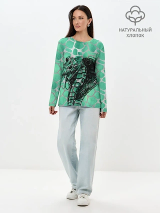 Лонгслив женский. Хлопок / Кобра. Змеиный стиль