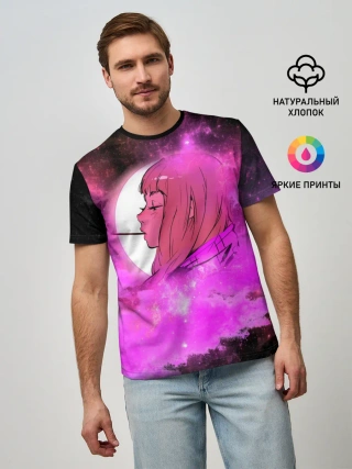 Мужская футболка оверсайз / Аниме Девушка | Розовый Космос
