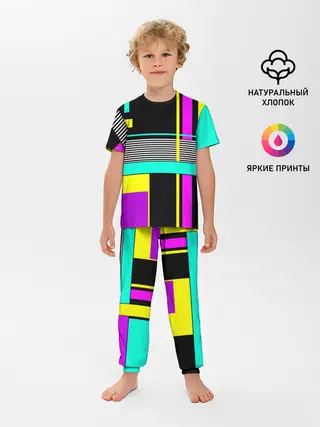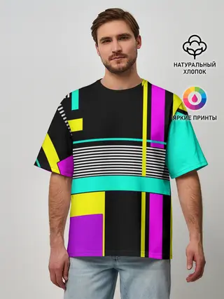 Мужская футболка оверсайз / Геометрический неоновый узор