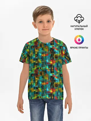 Детская базовая футболка / Разноцветные штрихи на бирюзе