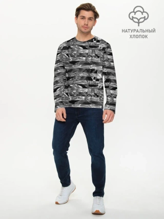 Мужской лонгслив базовый / Черно -белый полосатый узор
