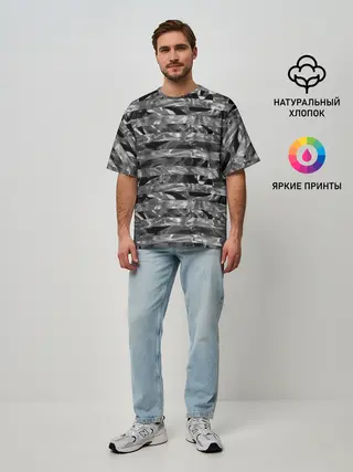 Мужская футболка оверсайз / Черно -белый полосатый узор