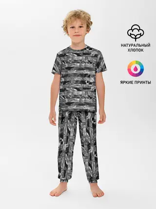 Мужская пижама с брюками / Черно -белый полосатый узор
