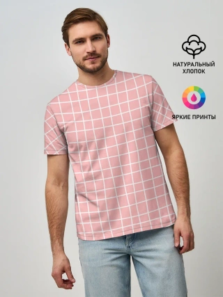 Мужская базовая футболка / Клетка волнистая