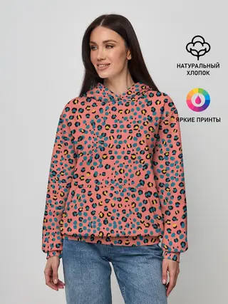 Худи мужской база хлопок / Леопардовый принт на розовом
