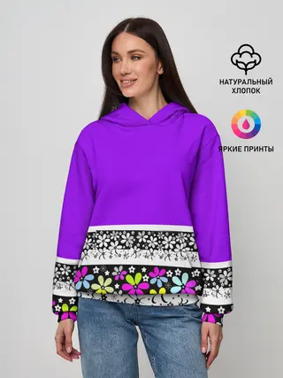 Женская футболка оверсайз / Яркий фиолетовый цветочный