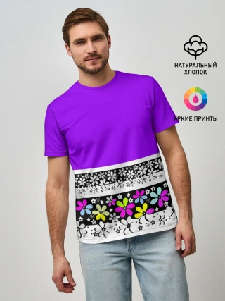 Мужская базовая футболка / Яркий фиолетовый цветочный