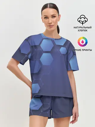 Женская пижама с шортами / Шестиугольники