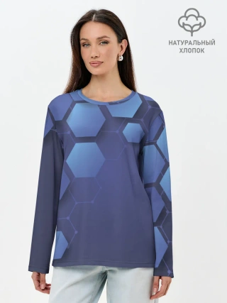 Лонгслив женский. Хлопок / Шестиугольники