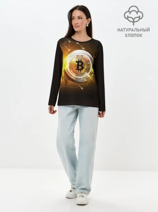 Лонгслив женский. Хлопок / КРИПТОВАЛЮТА БИТКОИН