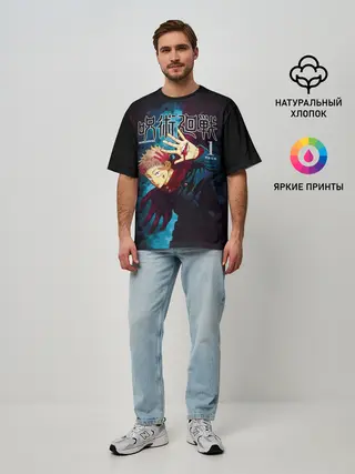 Мужская футболка оверсайз / Юдзи Итадори Магическая битва