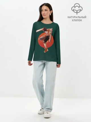 Лонгслив женский. Хлопок / Дэндзи в прыжке