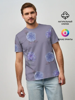 Мужская базовая футболка / Голубые камелии на сером