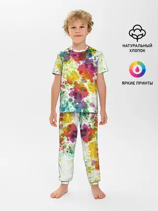 Мужская пижама с брюками / Красно-жёлтые пятна