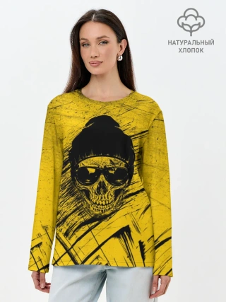 Лонгслив женский. Хлопок / Череп Хипстер Гранж Брызги