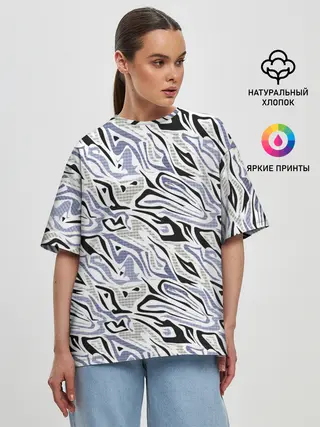 Женская футболка оверсайз / Абстрактный сиренево-черный