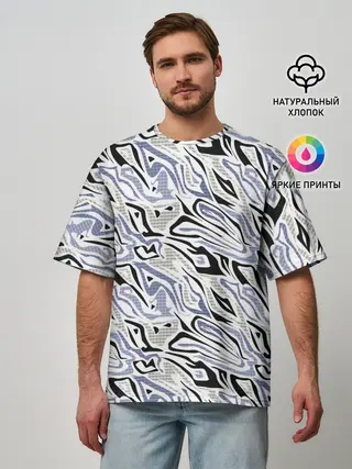 Мужская футболка оверсайз / Абстрактный сиренево-черный