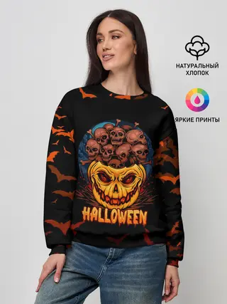 Женский свитшот / ТЫКВА С ЧЕРЕПАМИ