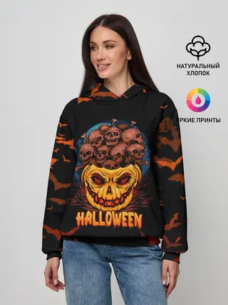 Женское худи / ТЫКВА С ЧЕРЕПАМИ