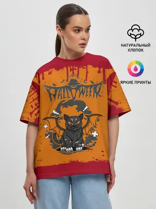 Женская футболка оверсайз / ЛЕТУЧАЯ КОТОМЫШЬ | ХЭЛЛОУИН