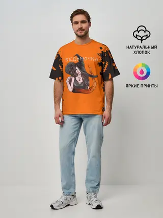 Мужская футболка оверсайз / ВЕДЬМОЧКА НА ХЕЛЛОУИН