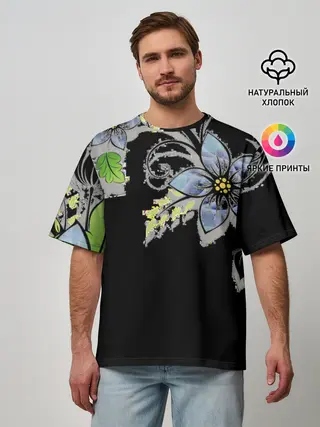 Мужская футболка оверсайз / Цветочная композиция с бабочками
