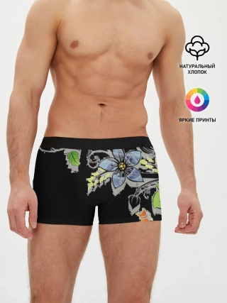 Мужские трусы боксеры / Цветочная композиция с бабочками