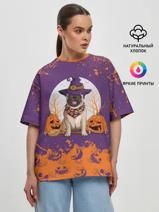Женская футболка оверсайз / МОПС НА ХЭЛЛОУИН