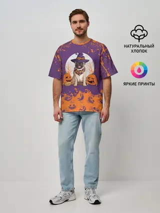Мужская футболка оверсайз / МОПС НА ХЭЛЛОУИН