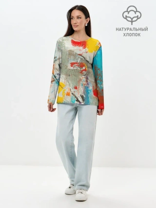 Лонгслив женский. Хлопок / Буйство красок 3D