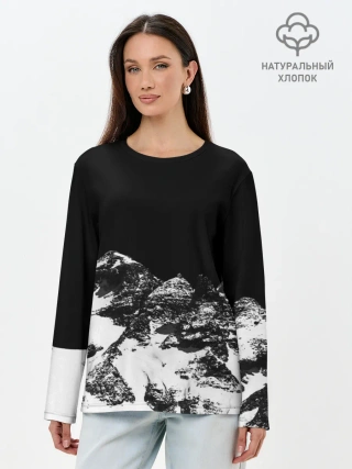 Лонгслив женский. Хлопок / ГОРЫ Ч/Б