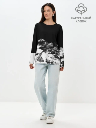 Лонгслив женский. Хлопок / ГОРЫ Ч/Б