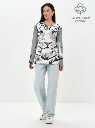 Лонгслив женский. Хлопок / Белый снежный тигр