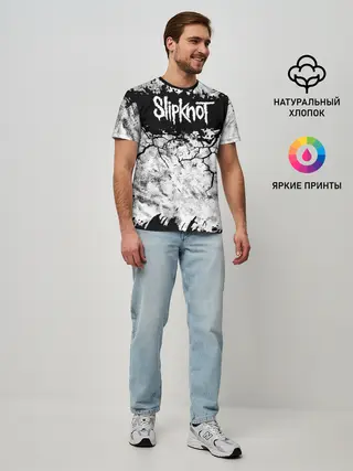 Мужская базовая футболка / Надпись Слипкнот Рок Группа ЧБ | Slipknot