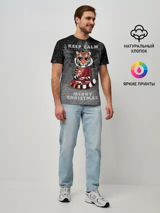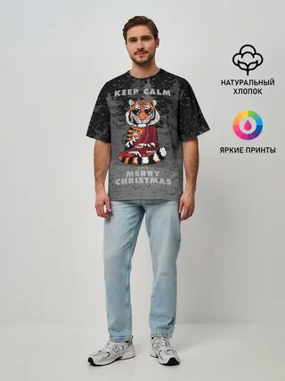 Мужская футболка оверсайз / Keep calm and Merry Christmas
