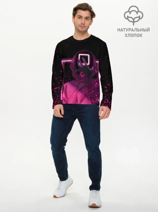 Мужской лонгслив базовый / ИГРА В КАЛЬМАРА НЕОН, СТРАЖ КВАДРАТ 029