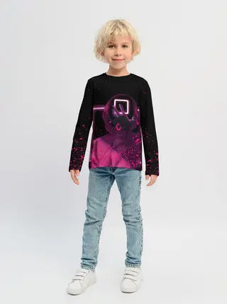 Детский лонгслив / ИГРА В КАЛЬМАРА НЕОН, СТРАЖ КВАДРАТ 029